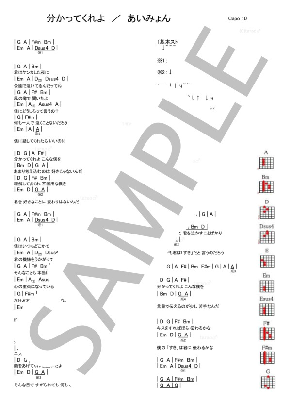 分かってくれよ ギター弾き語り 初級 ギター ウクレレ用コード譜