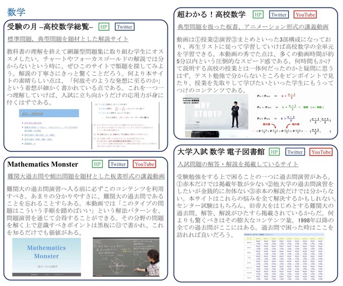 ネット上の 無料かつ優良な教育コンテンツ 一覧 主に高校レベル