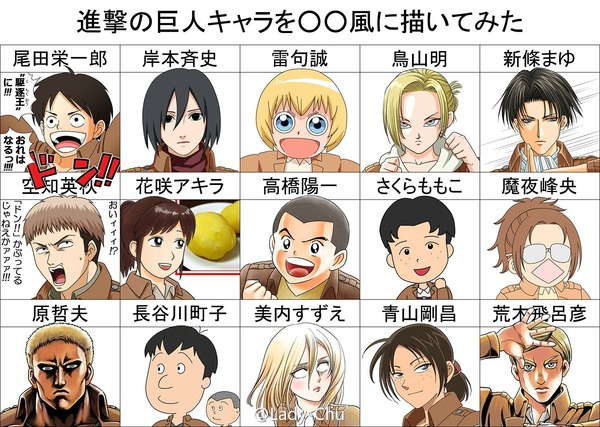 進撃の巨人キャラを 風に描いてみた がちゃんと似合ってる