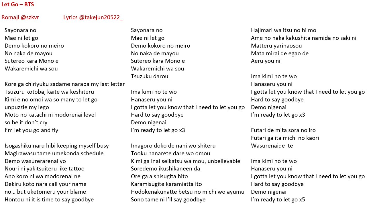 Let go 歌詞 意味 bts. Btsバンタンlet go歌詞の意味は 今回btsバンタンのlet goが月とオオカミちゃんには騙されないの主題歌に起用されるということで気になるのはどんな歌詞の内容意味かですよね 徹底調査していきます. Bts let go romaji. Let gobts 防弾少年団の歌詞ページですbts 防弾少年団が3枚目となる日本アルバムface yourselfを4月4日にリリースする 作詞作曲utahirojunsunny boy. 今回はbts防弾少年団のニューアルバムface yourselfに収録されている let goについてパート分けした歌詞をご紹介しています またlet goの歌詞に隠された意外な意味があることが わかりましたので合わせてご紹介します 彼らの曲を聴き始めた方はもちろん.